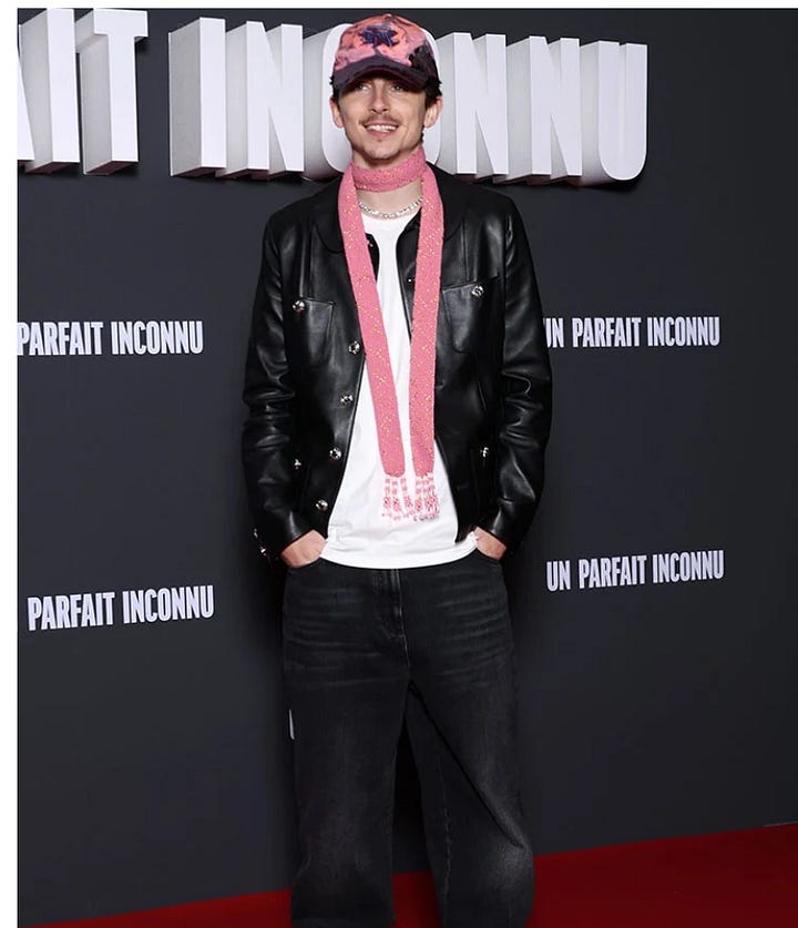 Timothee Chalamet has been giving us quite the fashion over in Paris promoting ‘A Complete Unknown.’ One twitter user accurately described his inspiration as Ashley Tisdale & I think that’s spot on. Of course if you’ve been on social media in the past year we’ve decided to call this style ‘babygirl’ - the Chanel bag & pink scarf really seal the deal on that one.