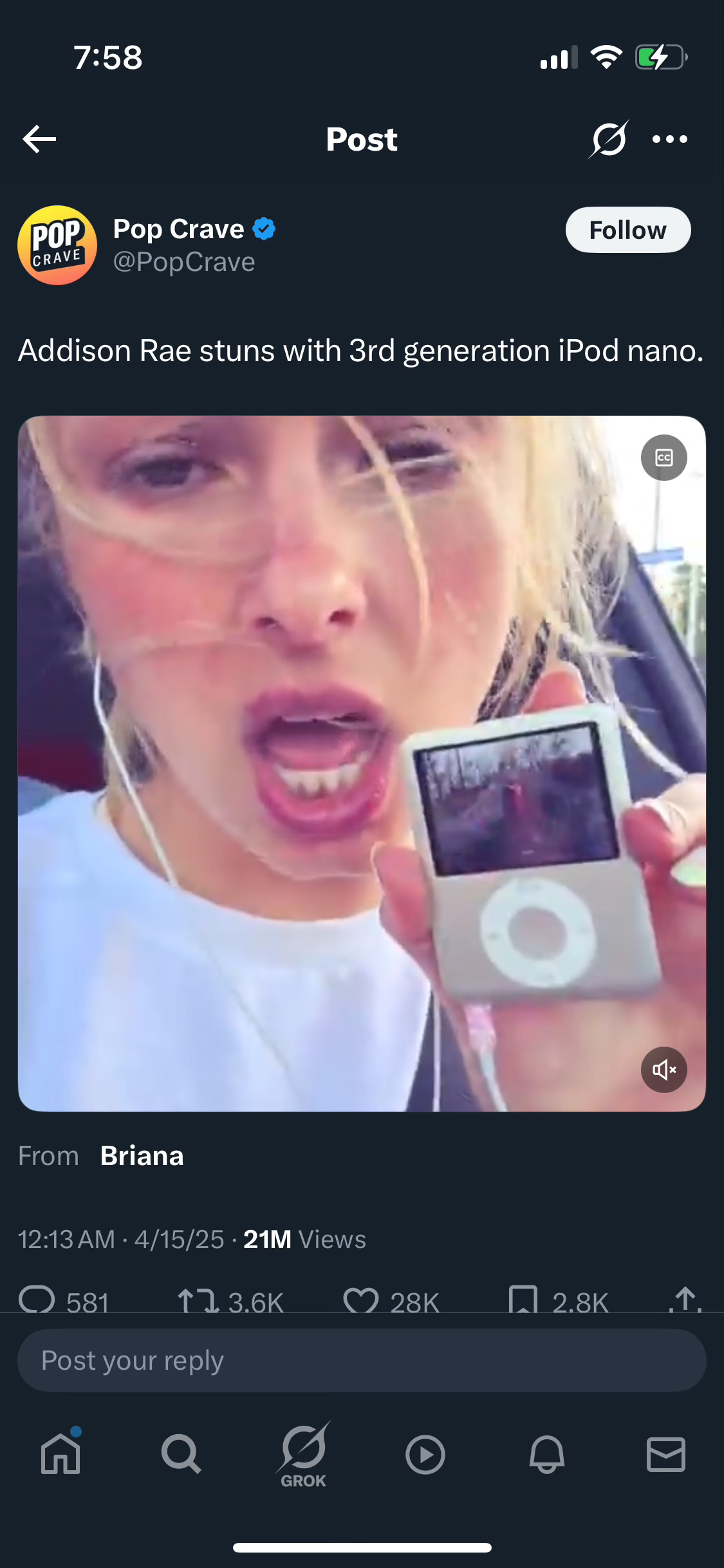 Ok up next our dear Addison Rae is releasing another single today - Headphones On. She’s getting some heat online for the promotion of it all, which simply includes her singing along to lyrics from music playing on an iPod nano. The critique being that she is ‘trying too hard’ - to which I say did you see Katy Perry’s latest album roll out? But I digress - I actually chatted a bit about Addison in a TGIF awhile back highlighting that the biggest issue I think people have with her is #1 the TikTok of it all. Gen pop still does not take that app seriously and so they’re finding it very difficult to adopt someone who came from the app into stardom. #2 the Kardashian link which definitely felt like a ploy from management to launch Addison into fame. People don’t look kindly on the Kardashians and I think that stigma has stuck a bit even as Addison has moved far away from that scene & into one that is much more respected by actual artists. All to say I am LONG on Addison Rae - if she was a stock I’d say buy! & I cannot wait to hear another bop from her.