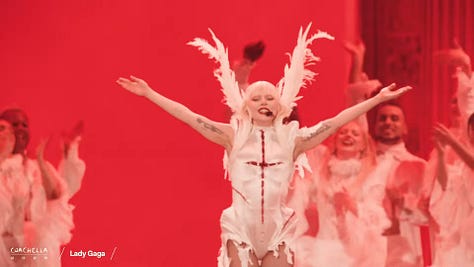 Lady Gaga’s performance in its entirety. A 20 song set list, multiple costume changes, insanely creative set design. It was truly one of the best Coachella performances ever & one of her best as well. It’s nice to see her come back better than ever (which is more than we can say for some musicians - we’ll get to it).