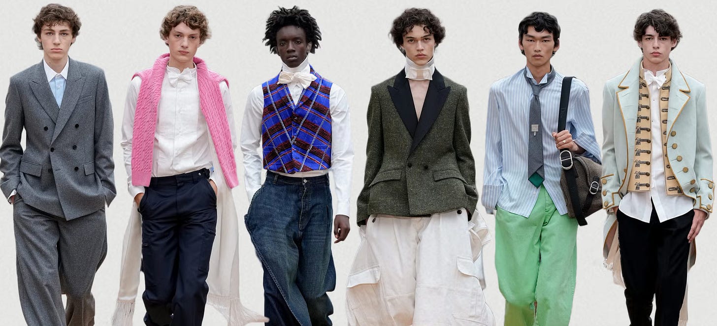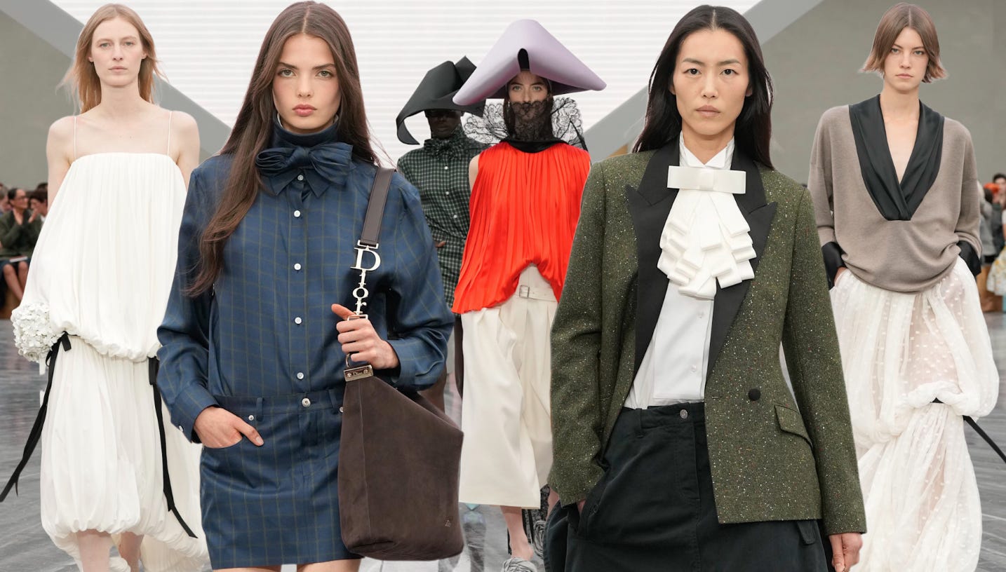 I’ve already seen the think pieces on JA’s collection - apparently very polarizing. Some loved it, some hated it. JA is a BIG deal. Any fashion head will tell you that. He turned Loewe around, had major celebrities wearing it all the time, people obsessed with his puzzle bags & everyone coveting tomato merch. So people (again fashion heads) were very excited for his Dior debut & btw he did already put a men’s collection down the runway, with overall positive reviews.
